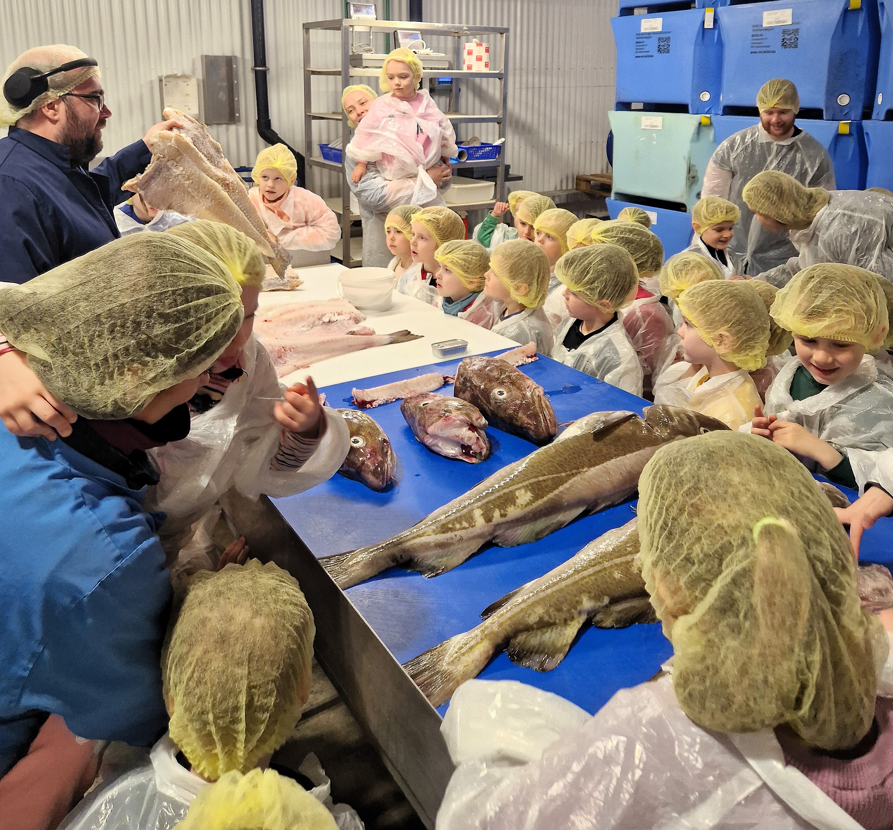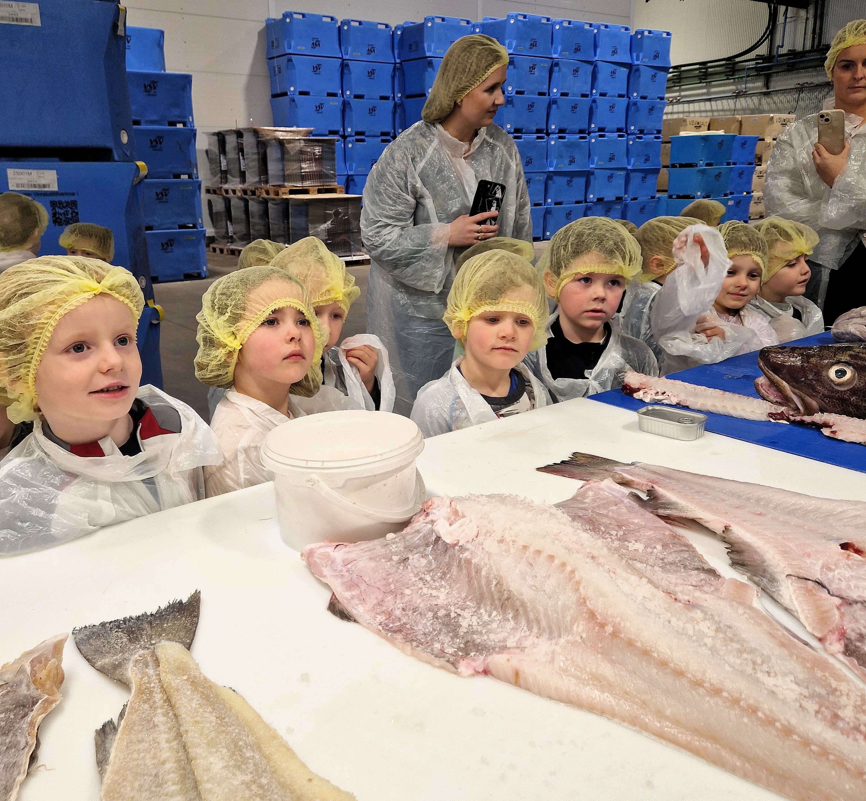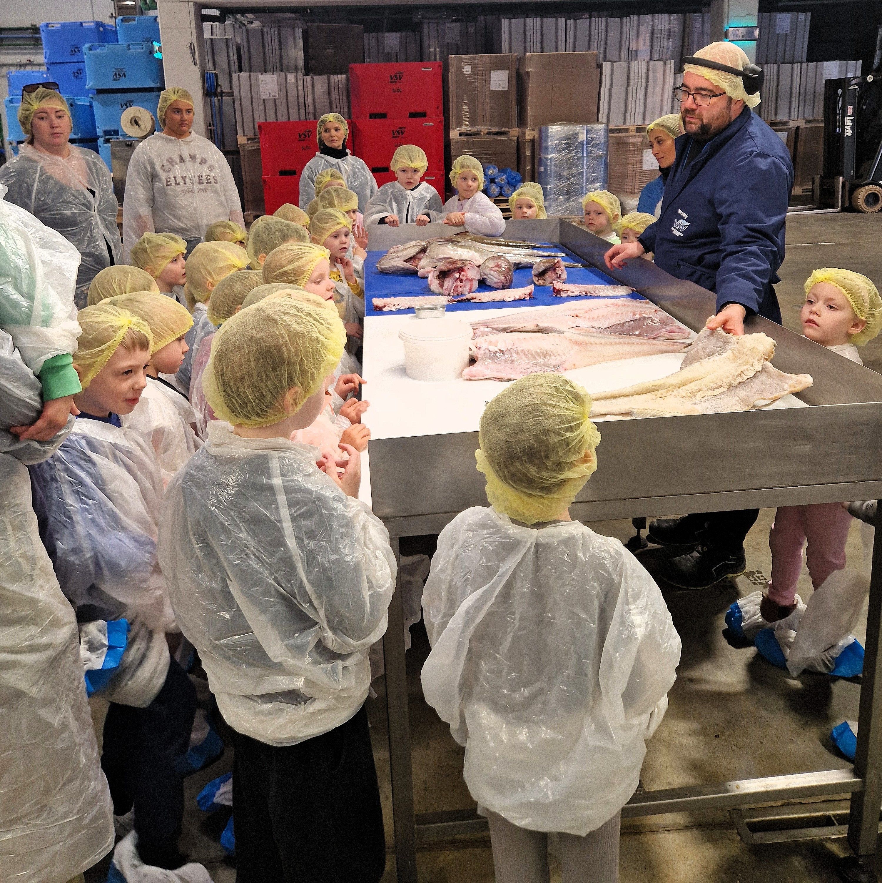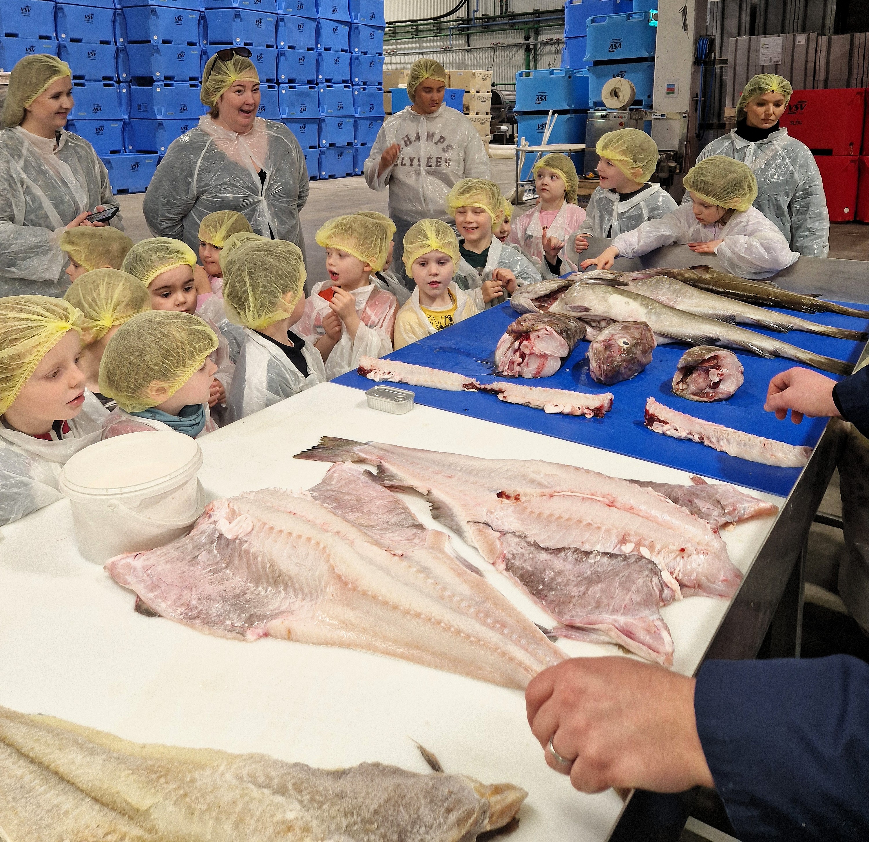 Víkin – 5 ára deild kom í heimsókn í Vinnslustöðina á fimmtudaginn síðastliðinn. Ástæða þess að þau óskuðu eftir því að fá að koma í heimsókn er sú að þau eru búin að vera að vinna með hafið sem þema í mars.