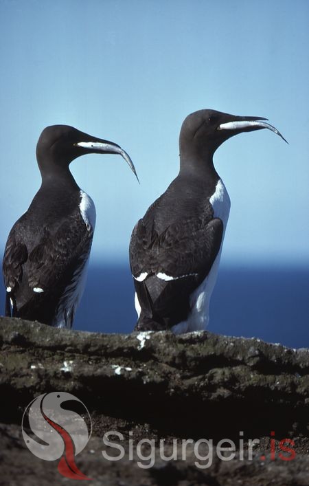 Í ferð sinni austur á Eyju í morgun tók Sigurgeir upp kíkinn til að kanna bergið í Ystakletti. Viti menn, þar sá hann svartfuglinn sestan upp. Sigurgeir sá svartfugla sitja á þremur til fjórum sillum rétt austur af Klettshelli. „Það stóðu tveir fuglar með bringuna fram, sem er fátítt. Yfirleitt snúa þeir bringunni að berginu,” segir hann.