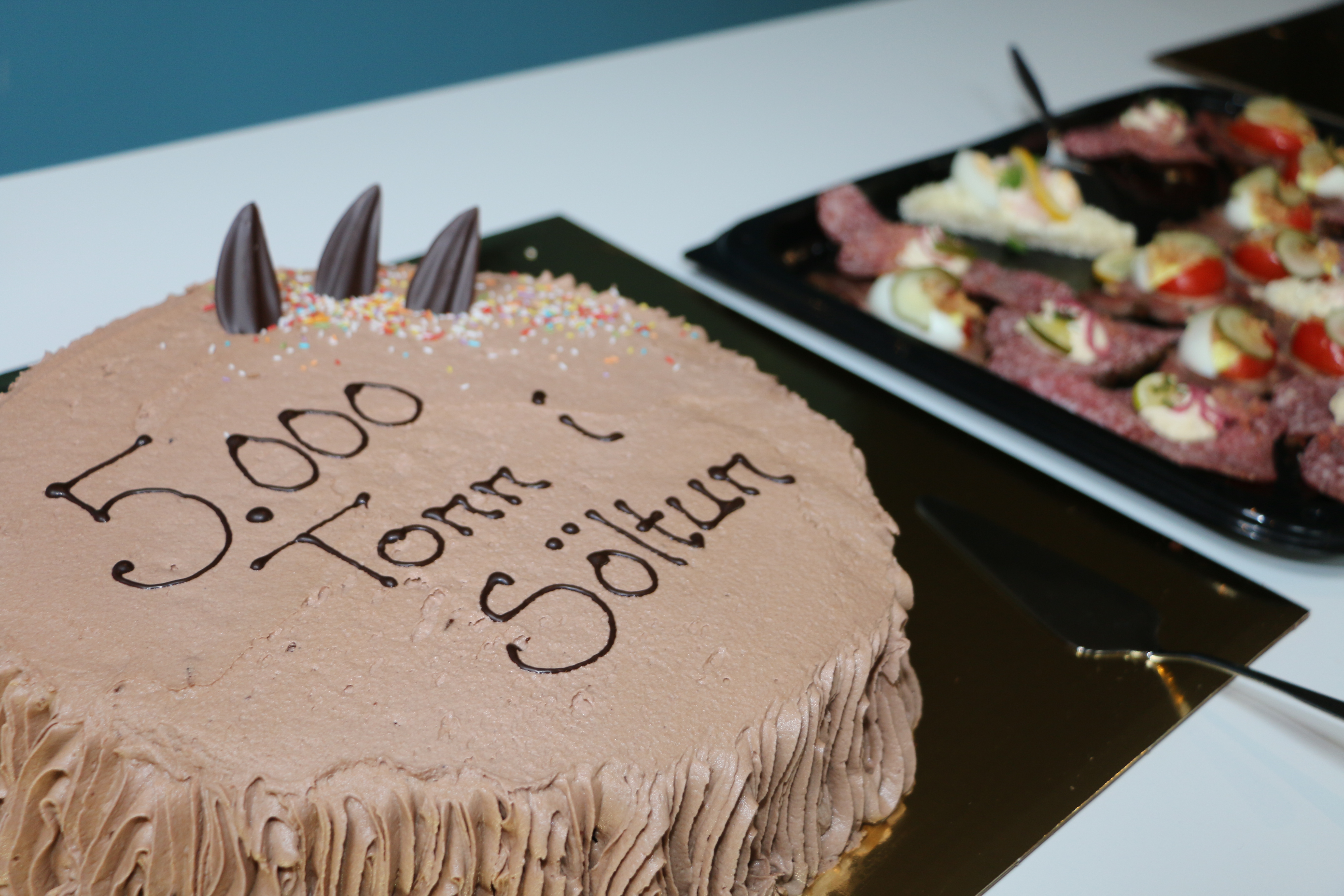 Í tilefni af 5000 tonna áfanganum var kaffihlaðborðið í kaffistofu VSV sérstaklega veglegt.